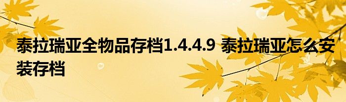 泰拉瑞亚全物品存档1.4.4.9 泰拉瑞亚怎样装置存档 具体