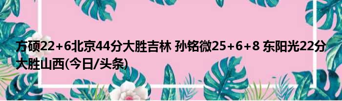 大家好,小编【冰壶秋月】,方硕22+6北京44分大胜吉林 孙铭微25+6+8 东阳光22分大胜山西很多人还不知道,那么现在让我们一起来看看吧!