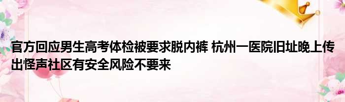 大家好,小编【甜甜微笑】,官方回应男生高考体检被要求脱内裤 杭州一医院原址晚上传出怪声社区有安全风险不要来很多人还不知道,那么现在让咱们一起来看看吧!