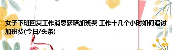 女子下班回复工作消息获赔加班费 工作十几个小时如何追