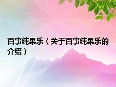 以上就是百事纯果乐方面的全部内容,如果感兴趣的话,可以收藏,也可以转发给小伙伴们哦。