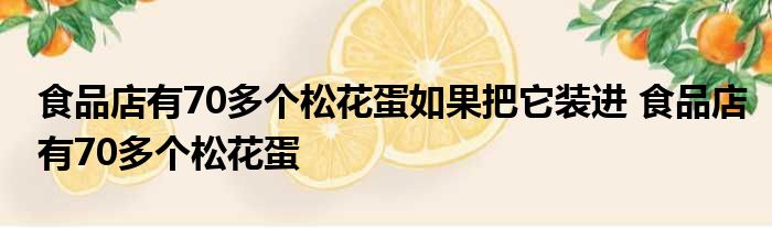 今天由小编落日追脚尖为小伙伴们解答食品店有70多个松花蛋如果把它装进,食品店有70多个松花蛋的相关问题,让我们一起看看吧!