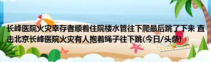 大家好,小编【心溺深海】,长峰医院火灾幸存者顺着住院楼水管往下爬最终跳了下来 直击北京长峰医院火灾有人抱着绳子往下跳许多人还不知道,那么现在让咱们一起来看看吧!