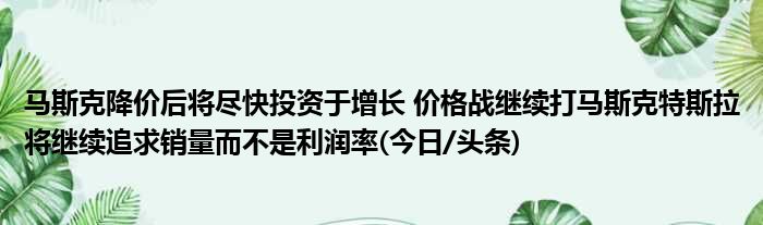 一、马斯克降价后将赶快出资于增加