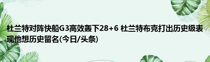 大家好,小编【柳昏花暝】,杜兰特对阵快船G3高效轰下28+6 杜兰特布克打出前史级体现他想前史留名很多人还不知道,那么现在让我们一起来看看吧!