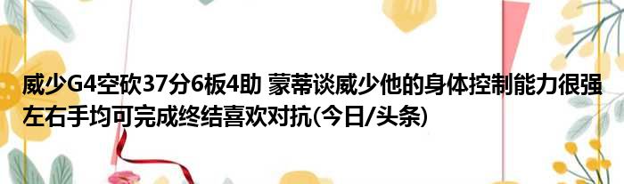 大家好,小编【若水盈盈】,威少G4空砍37分6板4助 蒙蒂谈威少他的身体控制能力很强左右手均可完结完结喜欢对立很多人还不知道,那么现在让我们一起来看看吧!