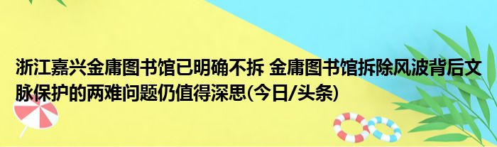 大家好,小编【千古幽兰】,浙江嘉兴金庸图书馆已清晰不拆 金庸图书馆撤除风云背面文脉维护的两难问题仍值得沉思很多人还不知道,那么现在让我们一起来看看吧!