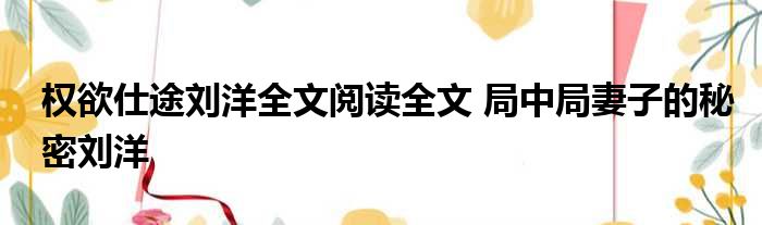 权欲宦途刘洋全文阅览全文 局中局妻子的隐秘刘洋 详细知识