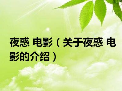 夜惑 电影 关于夜惑 电影的介绍知识具体详情