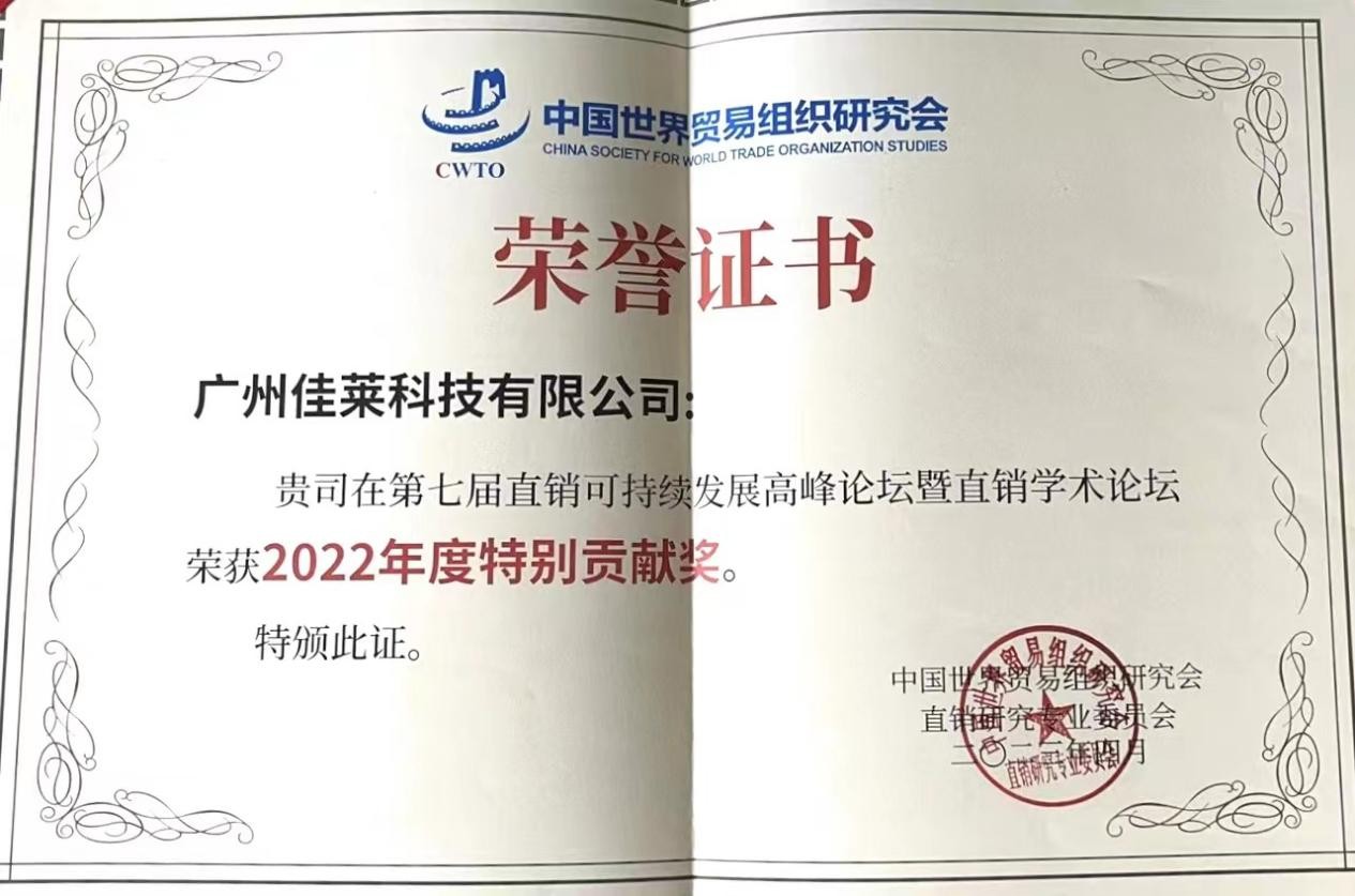 佳莱科技荣获第七届直销学术论坛“2022年度特别贡献奖”
