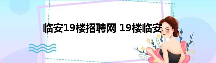 今天由小编不稀罕你的爱为小伙伴们解答临安19楼招聘网,19楼临安的相关问题,让我们一起看看吧!