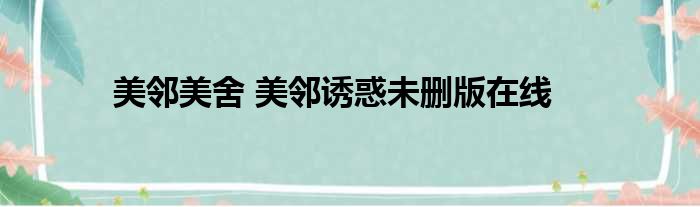 美邻美舍 美邻引诱未删版在线 具体情况详细内容介绍