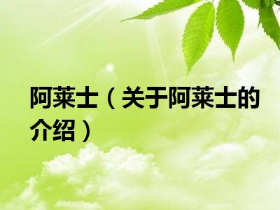 大家好,小新来为大家解答以上的问题。阿莱士,关于阿莱士的介绍很多人还不知道,现在让我们一起来看看吧!