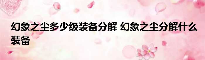 今天由小编暴走御姐为小伙伴们解答幻象之尘多少级配备分化,幻象之尘分化什么配备的相关问题,让我们一起看看吧!