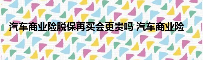 轿车商业险脱保再买会更贵吗 轿车商业险 是怎么回事