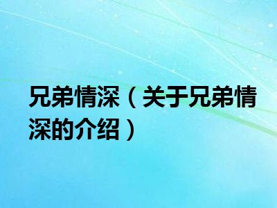 兄弟情深 关于兄弟情深的介绍具体情况是什么