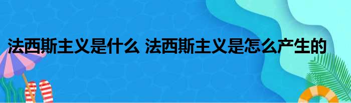 法西斯主义是什么 法西斯主义是怎样发生的 具体是什么