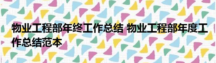 物业工程部年终工作总结 物业工程部年度工作总结范本