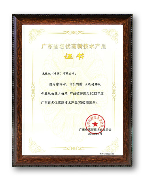 近来,广东省高新技能企业协会发布了2022年广东省名优高新技能产品名单,无限极(中国)有限公司旗下三款健康食物——无限极牌臻源胶囊、无限极牌乐姿片以及立迈健牌软骨提取物压片糖块获评“2022年广东省名优高新技能产品”,同期获奖的还有香雪制药、广汽本田等知名企业。