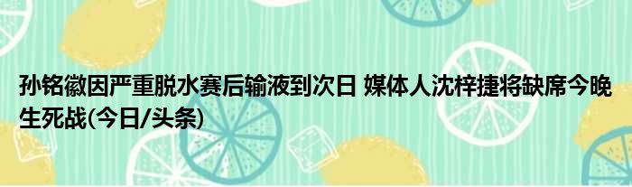 大家好,小编【狂人首领i】,孙铭徽因严峻脱水赛后输液到次日 媒体人沈梓捷将缺席今晚生死战很多人还不知道,那么现在让我们一起来看看吧!