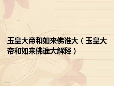 以上就是玉皇大帝和如来佛谁大方面的全部内容,如果感兴趣的话,可以收藏,也可以转发给小伙伴们哦。