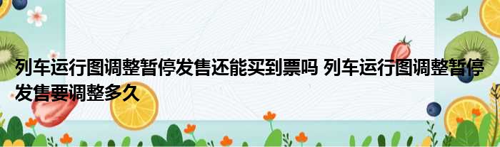 今天由小编若水盈盈为小伙伴们解答列车运行图调整暂停出售还能买到票吗,列车运行图调整暂停出售要调整多久的相关问题,让我们一起看看吧!