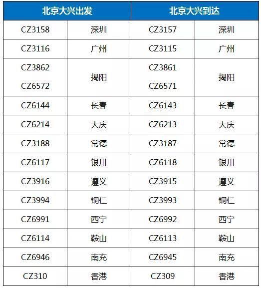 △南航首批在大兴机场运行的航班列表/图片来自南航官网