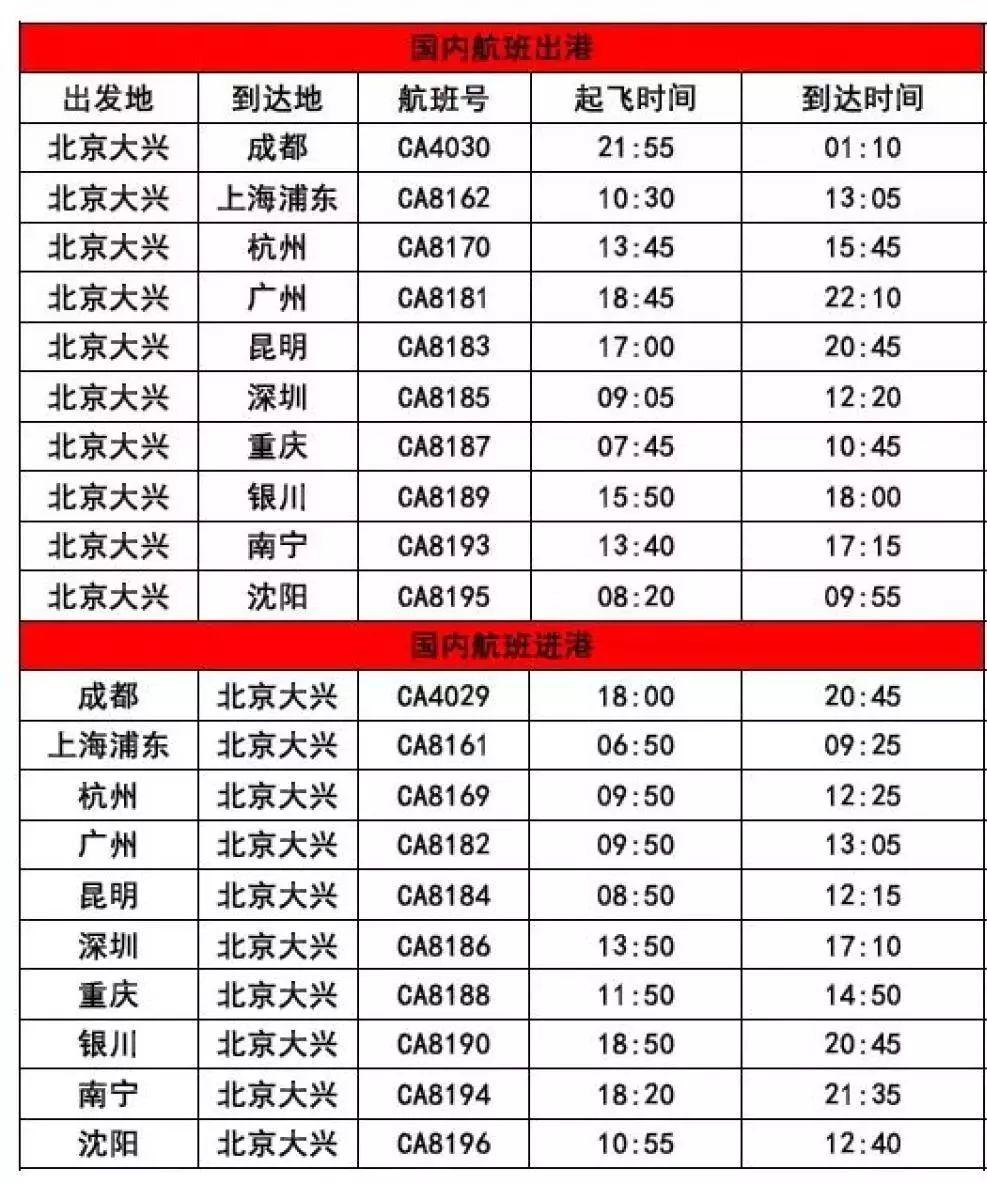 △国航大兴机场进出港航班信息/图片来自国航官方微信