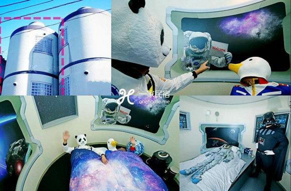 一家民宿太空船登陆东京!在这里你可以体验到在银河航行的生活,房间内备有星际大战的音乐以及角色扮演的服装,你可以和朋友们玩个酣畅淋漓!躺在船舱,窝在舒适的太空被里,抬头即可望见窗外正在和你打招呼的太空人!房间内还配备了游戏机,相信无论是孩子还是大人都会爱上这里。