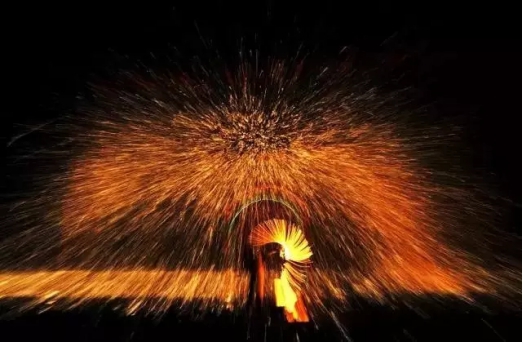 璀璨星空下,炫目的铁花在空中降落,银珠飞溅、金丝飞驰.......那是夏夜里一场不一样的“烟火”