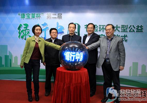 胶东在线北京11月11日讯(记者贾楚航摄影李刚)11日,以“出行自带日用品,节俭环保我光荣”为主题的康宝莱杯第二届“绿行中国”公益活动在北京启动。中国记协党组书记翟惠生,国家互联网信息办公室网络新闻信息传播局副局长侯云灏,中央部分重点新闻网站和商业网站及百家城市新闻网站代表,山东省网信办和烟台市有关领导出席启动仪式。
