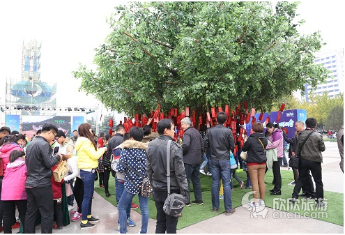 在泉城广场的推介活动中,福建省树大榕树“扎根”泉城,化身许愿树,为泉城人民带来祝福。