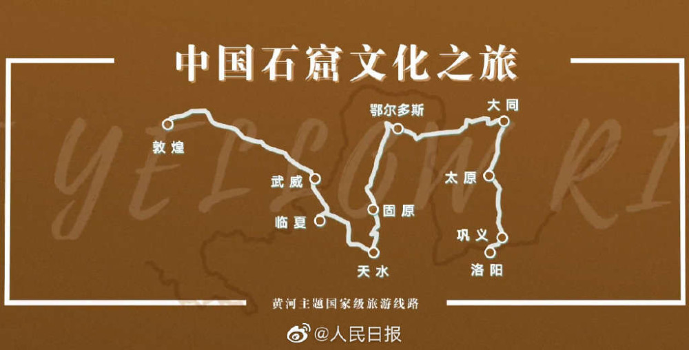 线路组成:敦煌(莫高窟)—武威(天梯山石窟)—临夏(炳灵寺石窟)—天水(麦积山石窟)—固原(须弥山石窟)—鄂尔多斯(阿尔寨石窟)—大同(云冈石窟)—太原(天龙山石窟)—巩义(巩县石窟)—洛阳(龙门石窟)