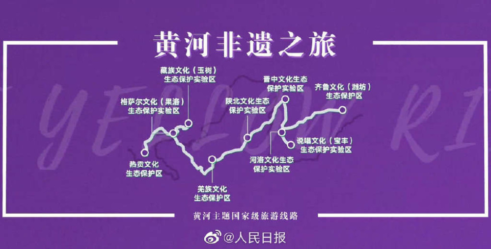线路组成:藏族文化(玉树)生态保护实验区—格萨尔文化(果洛)生态保护实验区—热贡文化生态保护区—羌族文化生态保护区—陕北文化生态保护实验区—晋中文化生态保护实验区—说唱文化(宝丰)生态保护实验区—河洛文化生态保护实验区—齐鲁文化(潍坊)生态保护区