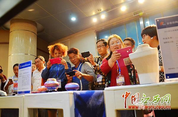 据悉,此次整个展览将持续5天,展出的旅游商品分为传承、创新、时尚、科技、艺术、功能等六大板块,包括2015江西旅游商品博览会特等奖青花胭脂红瓷具系列等百余件作品入围了展区,成为第12届景德镇陶瓷旅游博览会的又一亮点。