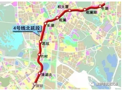 4号线三期工程是深圳市重要民生工程之一,工程均在龙华区的范围内,线路总体呈南北向,由现运营的4号线终点清湖站北端引出,由南至北依次沿和平路、观澜大道、高尔夫大道敷设,沿途设有清湖北站、竹村站、茜坑站、长湖站、观澜站、松元厦站、观澜湖站、牛湖站共8个车站,其中清湖北站为高架站,而观澜站则规划与龙华现代有轨电车换乘。
