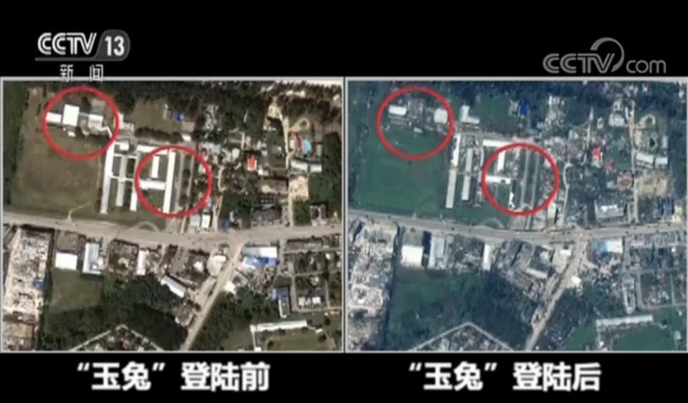 上图画面两侧分别是台风登陆前后的卫星图,图中可以明显的看出,右侧画面更加凌乱,道路、街区和建筑出现大面积位移的现象。一些房屋屋顶已经被完全吹翻,还有的建筑已经面目全非。