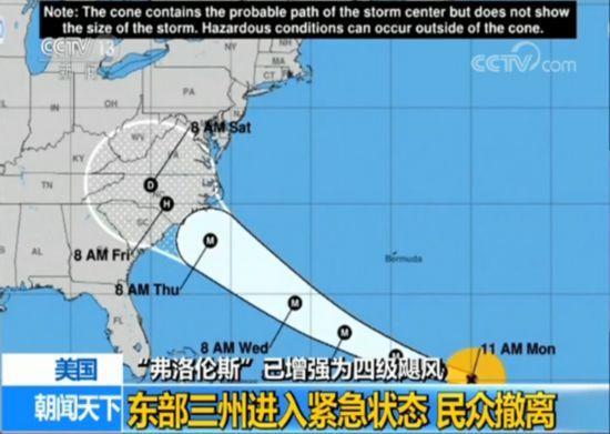 弗洛伦斯四级飓风 美国东部三州进入紧急状态