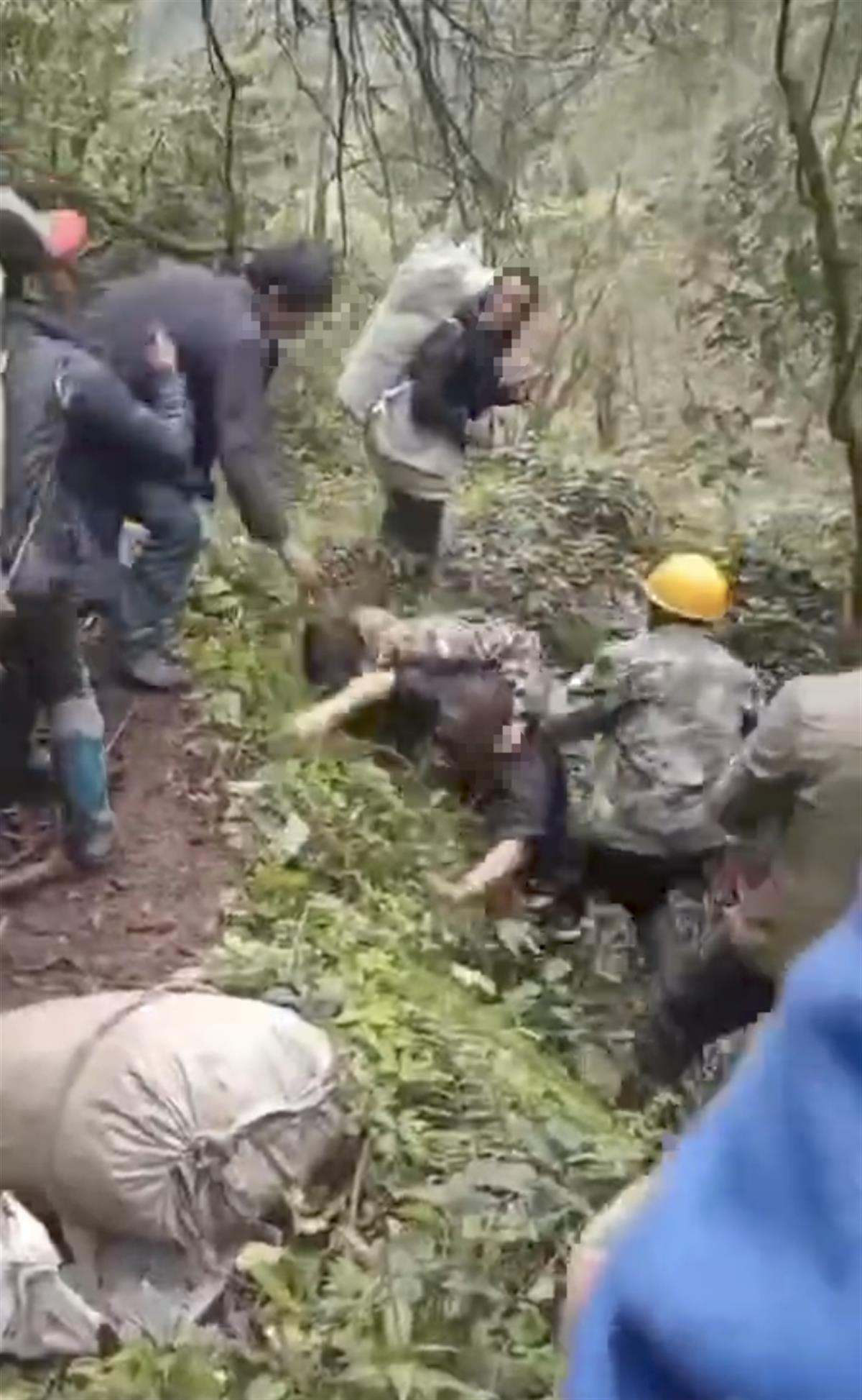 视频显示,在一段林间小道上,数十名背着重物的村民与几名人员产生冲突,现场有女子呼喊:“快打110报警。”事后的几段视频中,医务人员已赶到现场进行救治。