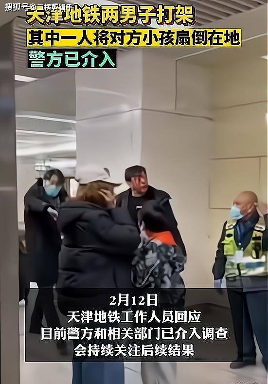 2男子地铁互殴 旁边小男孩被扇倒,众人不忍了