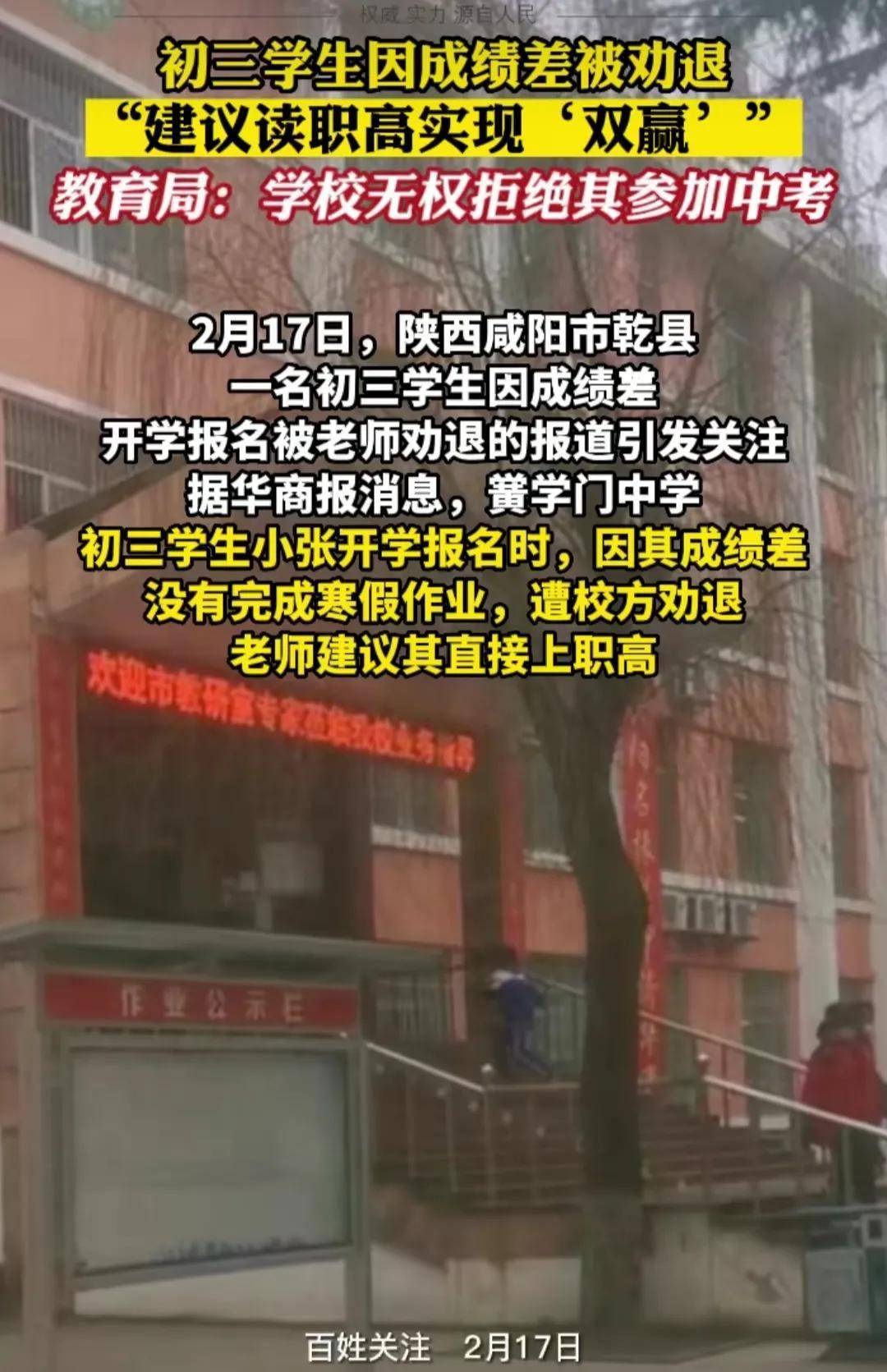 中国教育研究院人为,学校不能仅仅用学生的成绩来作为一个衡量学生成绩的标准,也不能把学生成绩和学校的业绩挂钩。劝退是违法了义务教育法。