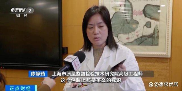 上海市质量监督检验技术研究院高级工程师 陈静茹:这个产品的信息上、包装上都是英文的标识。没有按照《中华人民共和国产品质量法》的规定,标识产品的厂名、厂址、执行标准等信息。