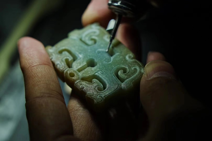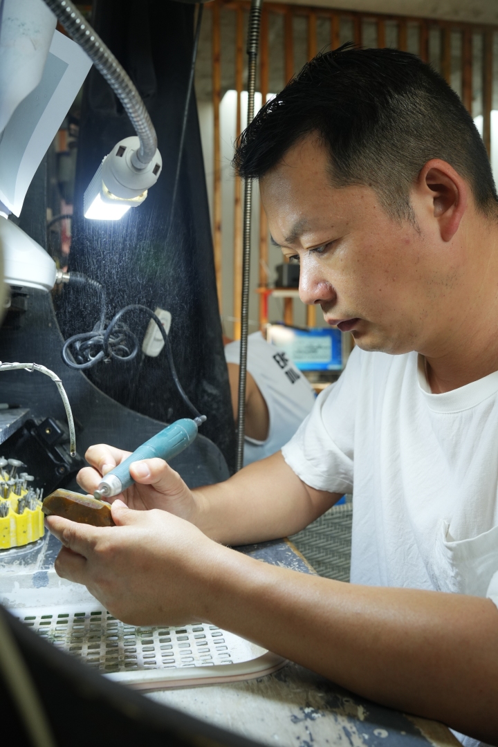 其时翡翠生意很好做,也很少有学院派的人做玉雕,对我来说是一个机遇。到2012年我就成立了“觉石工作室”,师傅带徒弟,做一些高端的私家定制,最多的时候工作室有30多个人。咱们的工作便是对原石进行雕琢规划,更多的是关注于自己的创造。