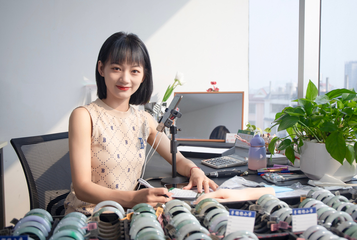 咱们自己也在抖音做直播,叫做“手镯杨小乖”,粉丝有十几万,加上我一共有