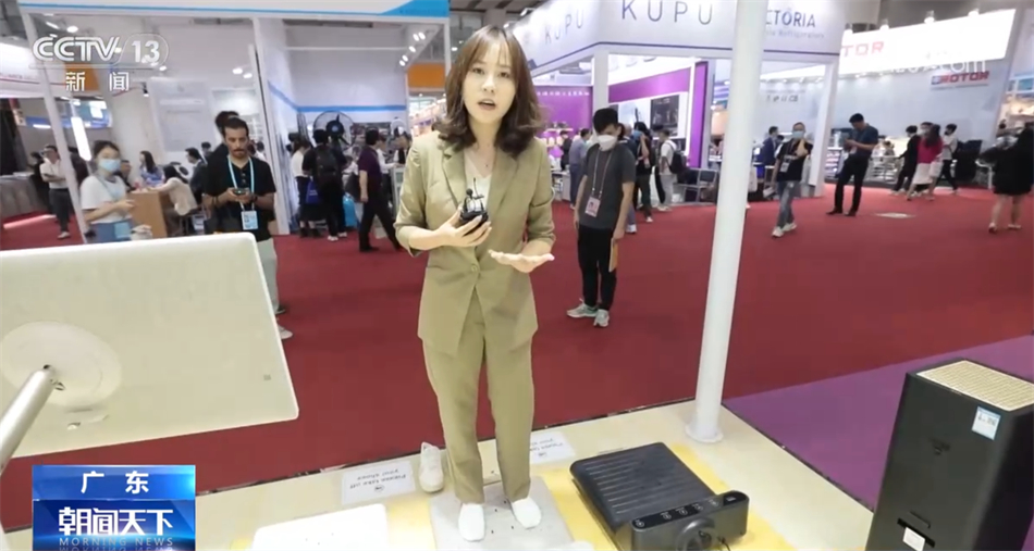 韩国参展商:这是咱们的一个全新的产品,叫身体和足部干燥机,这是咱们在广交会首发的一款产品。