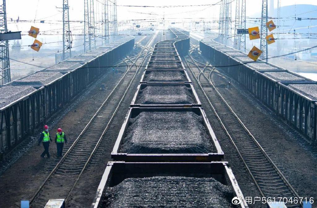 2023年1月14日,内蒙古自治区鄂尔多斯市伊金霍洛旗,国家能源集团神东煤炭布尔台煤矿,运煤列车等待外运。中新社发 王正 摄
