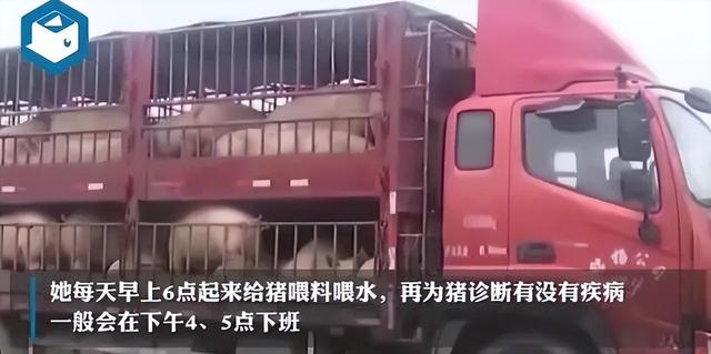 她称,自己一般早上6点多钟起来给猪喂料就行,现在设备也比较自动化,喂完了料就喂水,然后再观察下猪群,看下有没有不吃料或者疾病的现象,然后再去诊断一下,诊断有问题的就给他们打药。有时候4、5点就下班了,有时候可能晚一点,一个月休息四天。如果猪群有生病的情况,可能晚上还要去看一看,观察一下猪的情况。