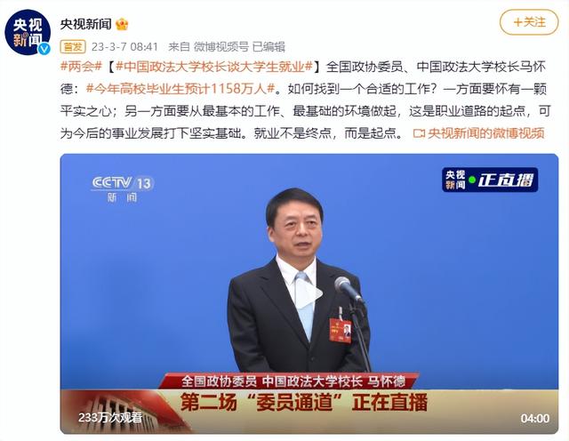 “就业是最基本的民生,大学生又是宝贵的人力资源,他们的就业是个人的大事,也是家庭的大计,也关系到国家的发展和未来。”3月7日,全国政协十四届一次会议第二场“委员通道”采访活动开启。当谈及高校毕业生就业问题时,全国政协委员、中国政法大学校长马怀德委员发表了上述观点。