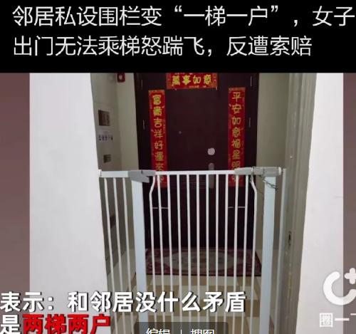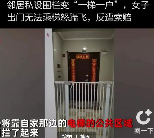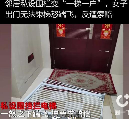 邻居私设围栏变1梯1户女子怒踹飞,反遭索赔