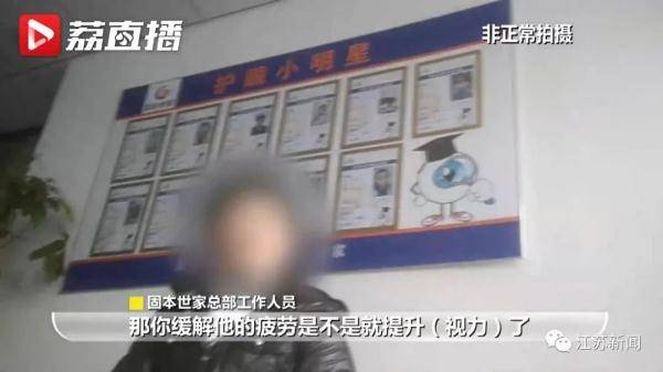 但是固本世家总部的展板上,却宣扬多名近视儿童使用了他们的产品后,裸眼视力得到了大幅进步。面临记者的质疑,总部工作人员依然坚持以为他们的产品可以缓解视疲惫,从而进步视力。